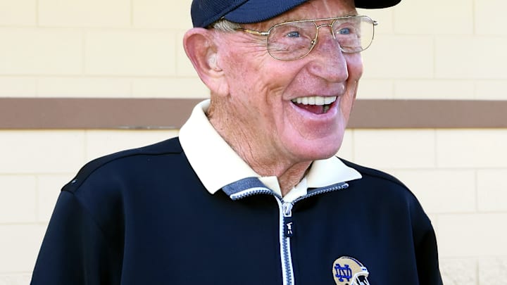 The 89-year-old former Fighting Irish, Arkansas Razorbacks, and North Carolina State head coach is best known in the college football world for his run in South Bend from 1986 through 1996. That run saw him coach some of the most famous ND players of the modern era, including Tim Brown, Raghib Ismail, "Rocket" Ismail, and Tony Rice. Holtz also got the Irish their last national title in 1988.